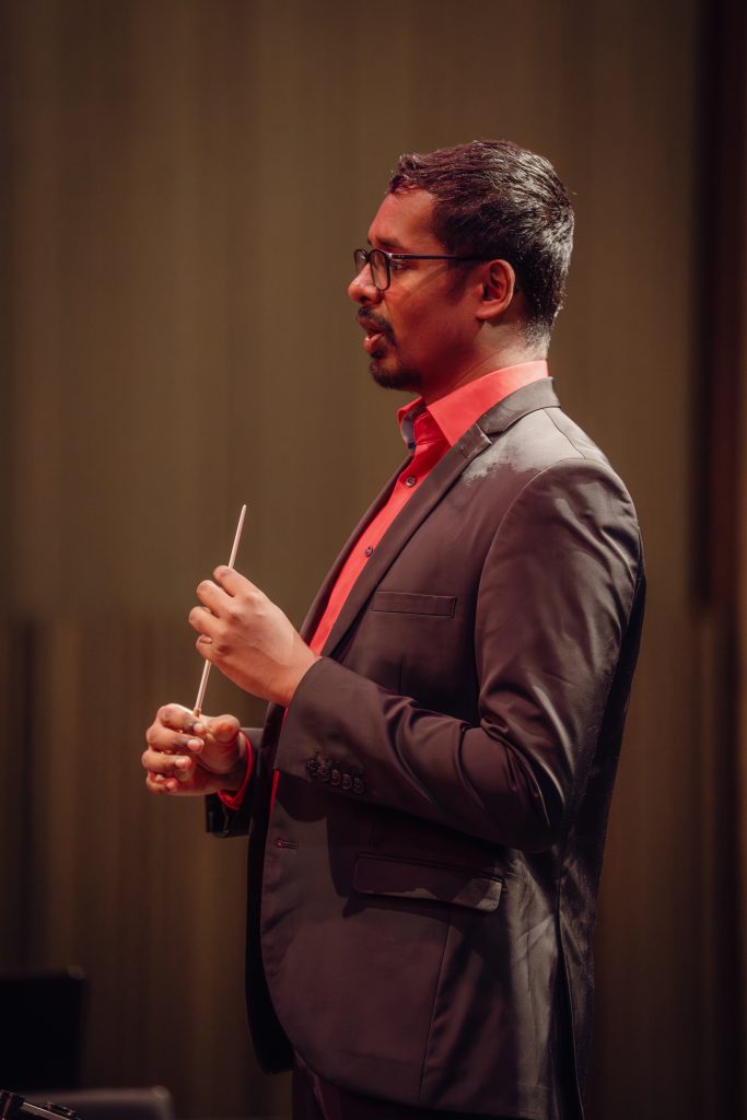 Né en l’an 2000, Nichanth Nagalingam découvre la musique à 11 ans au sein du Corps des Cadets de la Ville de Bulle, où il débute par l’initiation musicale avant de se tourner vers la percussion, sous l’enseignement de Louis-Alexandre Overney. Passionné et curieux, il élargit rapidement ses horizons instrumentaux, explorant notamment le saxophone et le piano. Lauréat de plusieurs concours de solistes fribourgeois, il poursuit son parcours en parallèle de ses études universitaires en Informatique et en Pédagogie-Psychologie à l’Université de Fribourg.